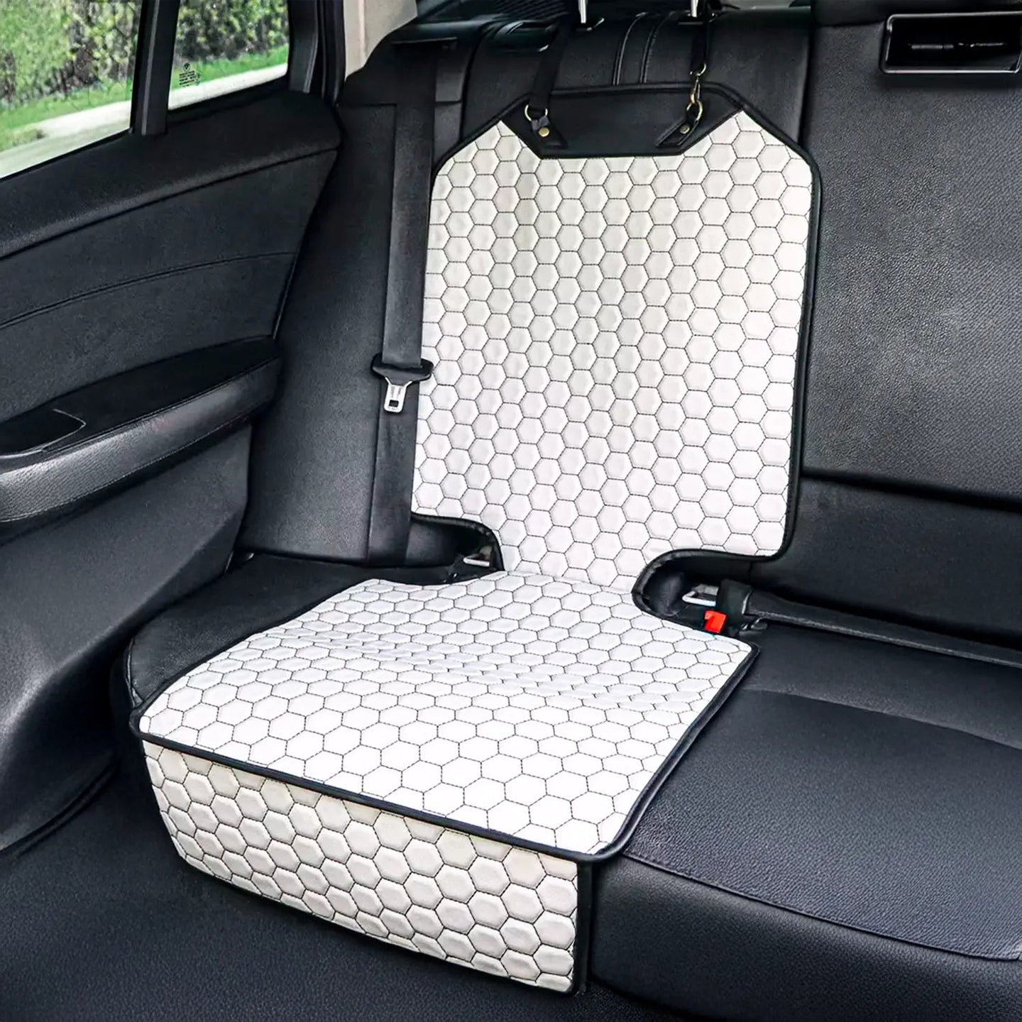 שטיח ההגנה למושב רכב מציע מחסום יעיל נגד כתמים ונזילות. העיצוב ההקסגונלי הלבן שלו מוסיף נגיעה של אלגנטיות לפנים הרכב שלכם. קל להתקנה, הוא מתאים לרוב הרכבים.